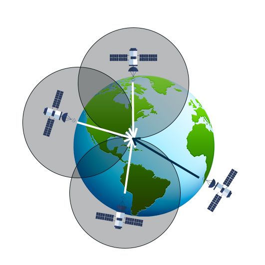 Путем получения сигналов от трех спутников можно определить широту и долготу пользователя, а четвертый спутник предоставляет информацию о высоте над поверхностью. Полученные данные могут быть объединены в систему уравнений, из которых можно вычислить координаты пользователя.
